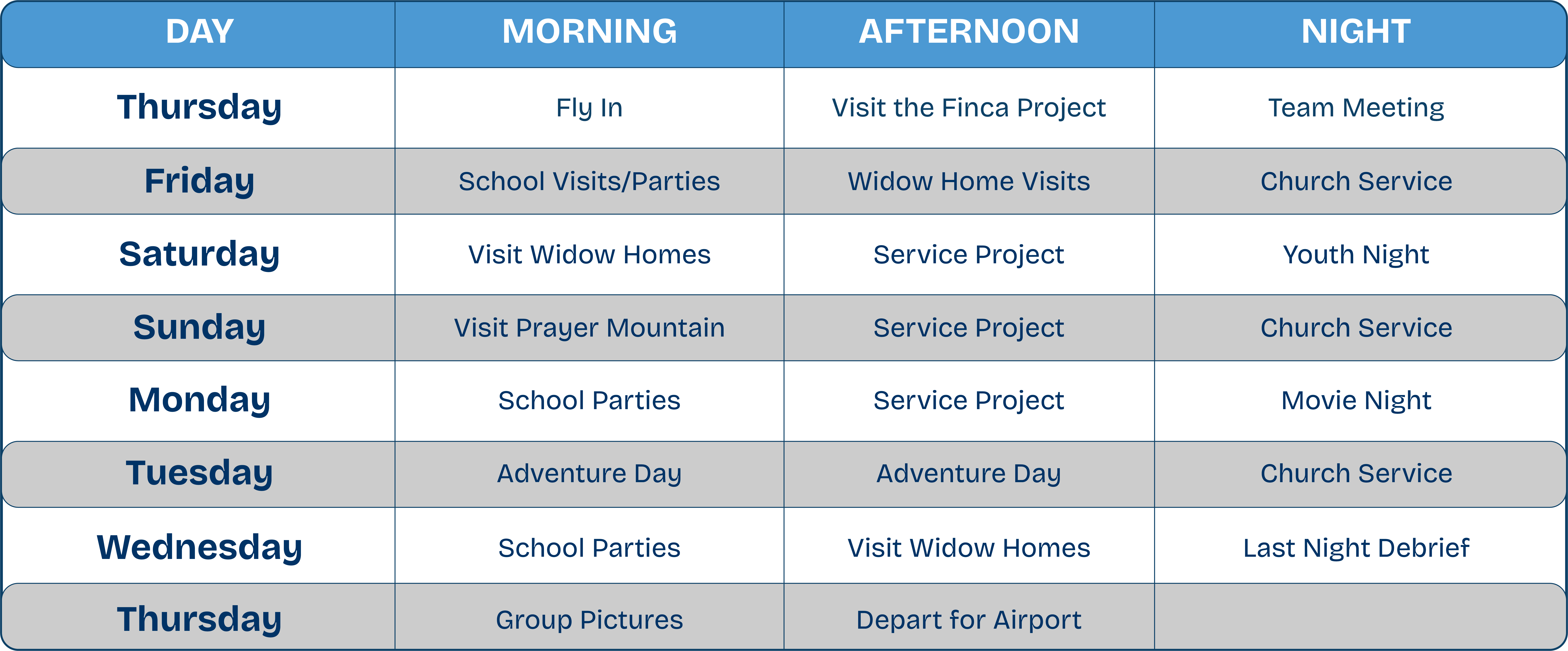 If that’s your story, take the next step today and deepen your involvement in the lives of those you’re already supporting. Learn more about different trip options and dates below!